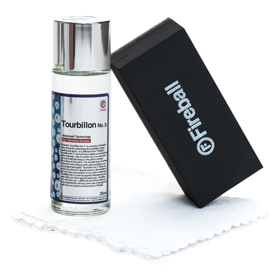Die speziell entwickelte Tourbillon No.3-Versiegelung, die sich an die Wachskomponenten bindet und neue, haltbarere Eigenschaften verleiht. Tourbillon No.3 ist der sogenannte Booster, dessen Aufgabe es ist, den Schutz des Wachses auf etwa 6 Monate zu verlängern und der geschützten Oberfläche einen einzigartigen Glanz und Glätte zu verleihen. Es ist vor allem für Kunden zu empfehlen, die einen sehr dauerhaften, periodischen Schutz für ihr Auto suchen und gleichzeitig auf einen hohen Glanz und stark auffallende Oberflächen achten.