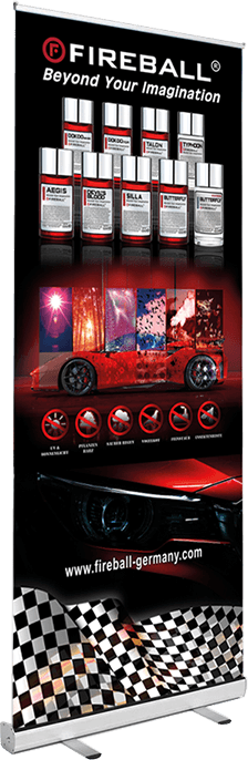 - Roll-up-Banner mit „Fireball Certified Detailer“ mit deinem Firmenlogo