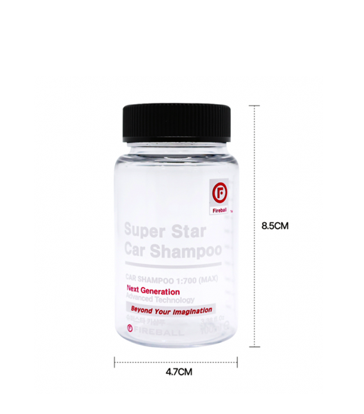 Fireball 100ml Leerflasche mit Messskala, perfekt zum Umfüllen oder Mischen von Shampoo und Reinigungskonzentraten. Das Schraubsystem gewährleistet eine absolut dichte Versiegelung der PET-Flasche und ist resistent gegen alle Reiniger und Pflegemittel von Fireball.